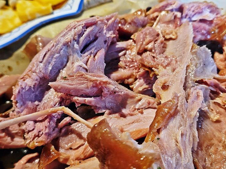 몽둥이 고기는 칠면조 다리 부이다. 칠면조는 닭이나 오리에 비해 살짝 퍽퍽한 감이 없지 않아 있지만 잘 조리를 하면 담백하면서 깊은 풍미를 잘 느낄 수 있는 좋은 고기다. 서양만큼은 아니지만 이제 우리나라에서도 칠면조 고기를 쉽게 먹을 수 있게 되었다.