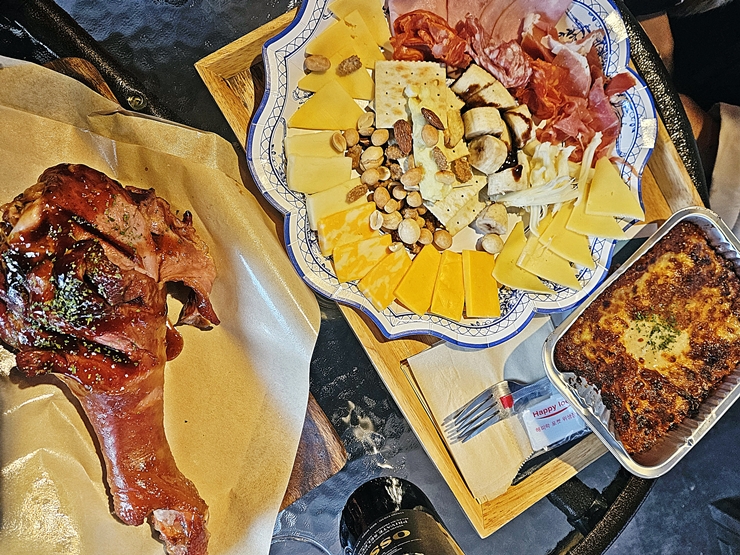 우리가 주문한 몽둥이 고기, 햄 플레터와 라자냐. 고기가 있으니 당연히 항공 샷을 찍어야지. 고기를 먹는데 항공 샷을 찍지 않는 것은 고기를 우롱하는 행위나 다를 바가 없다.