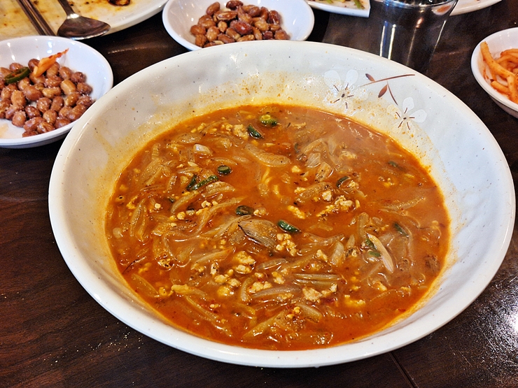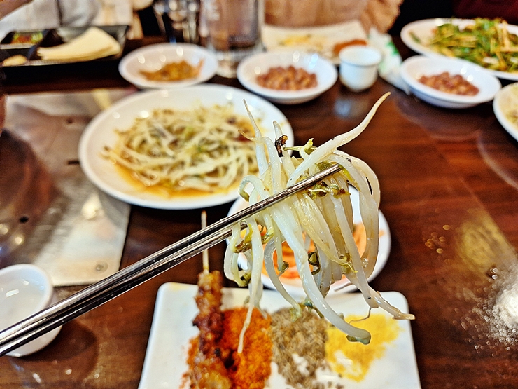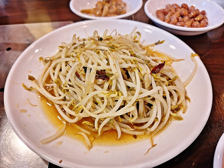 기본으로 나오는 숙주 무침. 두 테이블을 사용했기 때문에 두 개로 나눠 제공했다. 양이 적어 보이긴 하지만 다른 것들도 많았기 때문에 딱히 부족하다고 느낄 수 없었다.