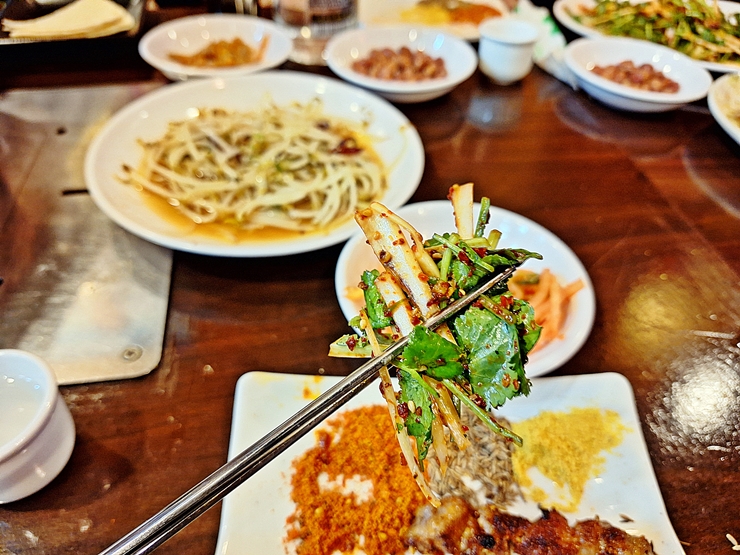 향긋함이 참 좋은 고수 무침. 고수는 호불호가 강한 채소이긴 하지만 한 번 맛 들리면 나도 모르게 이 맛을 찾게 된다. 우리 일행 중에 고수를 먹지 못하는 사람이 없어서 기분 좋게 주문할 수 있었지.
