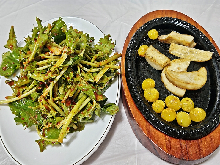 채소 무침과 새송이 버섯 은행 구이. 은행은 많이 먹으면 몸에 좋지 않다고 해서 지인에게 많이 양보했다. 역시 나의 건강을 잘 챙기는 멋진 나.