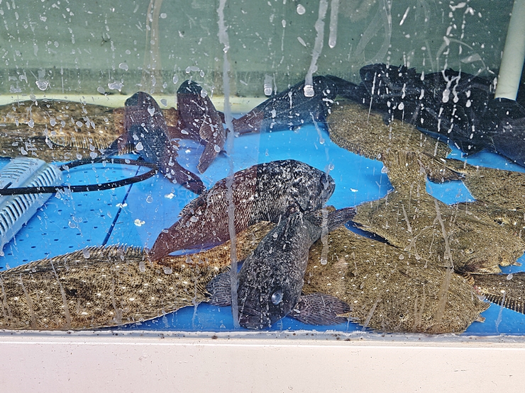 매장 바깥에 있는 수조에서는 물고기들이 힘차게 헤엄을 치고 있다. 참으로 고마운 녀석들이 아닐 수 없다. 너희들이 있음에 내가 이날도 즐겁게 술을 마셨지. 이 자리를 소소한 감사의 인사를 전한다.