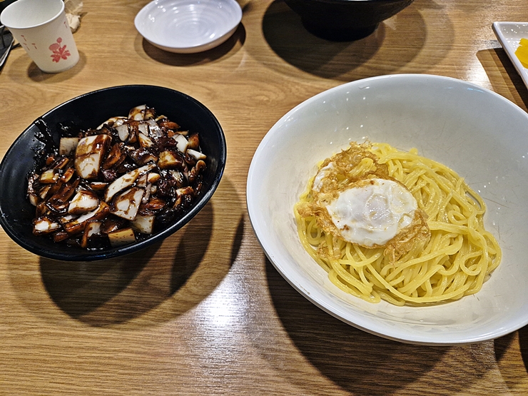 야무지게 비벼서 맛있게 냠냠. 계란 후라이는 반숙으로 튀기듯이 구웠는데 이게 굉장히 맛있다. 간짜장 소스는 굉장히 꾸덕하고 녹진하다. 간이 강할 것 같았는데 생각만큼 짠맛은 없었고 조미료의 감칠맛이 잘 느껴졌다. 이 정도 가격에 이 정도 퀄리티면 준수하다고 말할 수 있다.