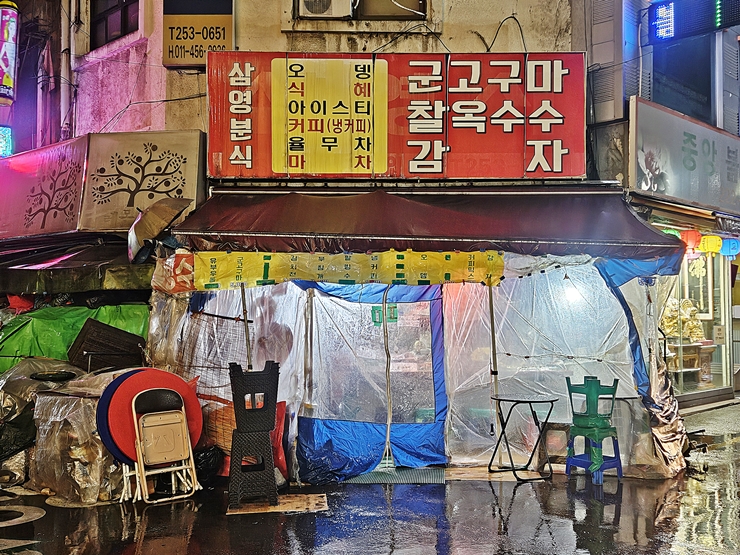 조금 늦은 시간에 가서 그런지 시장은 굉장히 한적했다. 홍명보라매라는 상호가 인상 깊어서 한 장 찍었다. 홍명 보라매인지, 홍명보 라매인지 잘 모르겠지만 뭐가 되었든 인상 깊은 상호임에는 틀림 없다.