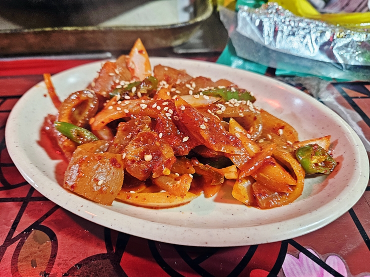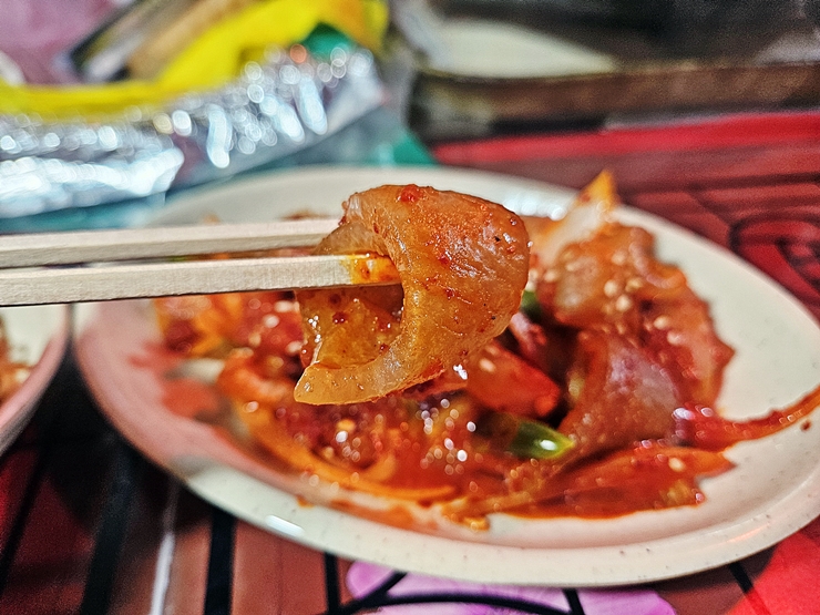 과하지 않게 매콤하고 쫀득한 식감이 일품이다. 이런 포장마차에서 먹는 돼지 껍데기의 경우 재고 회전이 느려서 누린내가 나는 경우가 있는데 삼영분식의 돼지 껍데기에서는 그런 불쾌한 냄새가 나지 않았다. 이렇게 맛있는 껍데기에 소주 한 병은 가뿐히 마실 수 있지.