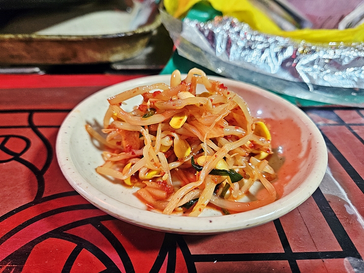 기대하지 않았던 기본 반찬으로 콩나물 무침이 나온다. 이런 소소한 서비스는 괜히 반갑기 마련이지. 콩나물 무침은 고춧가루를 사용해서 만들었는데 많이 맵지 않아 좋았다. 콩나물 무침으로 소주 두 잔은 마실 수 있지만 과음을 할 수는 없기 때문에 딱 한 잔만 마셨지.