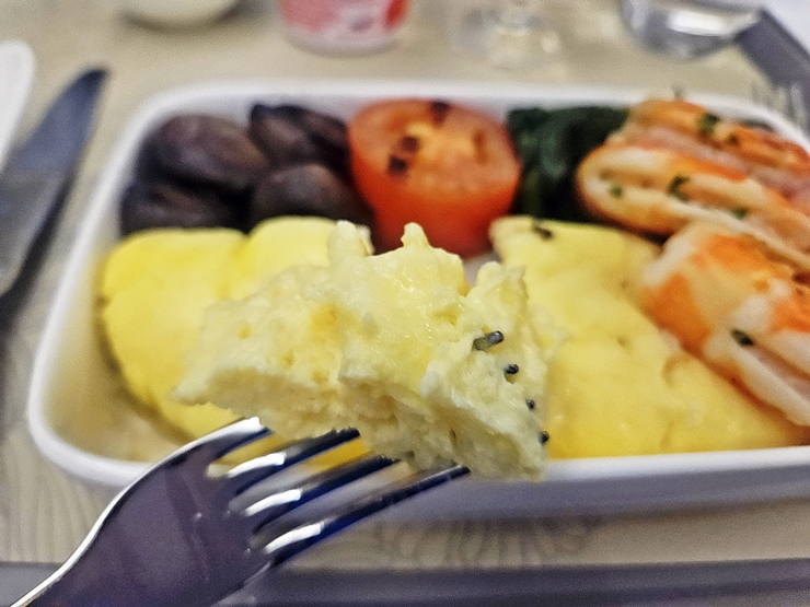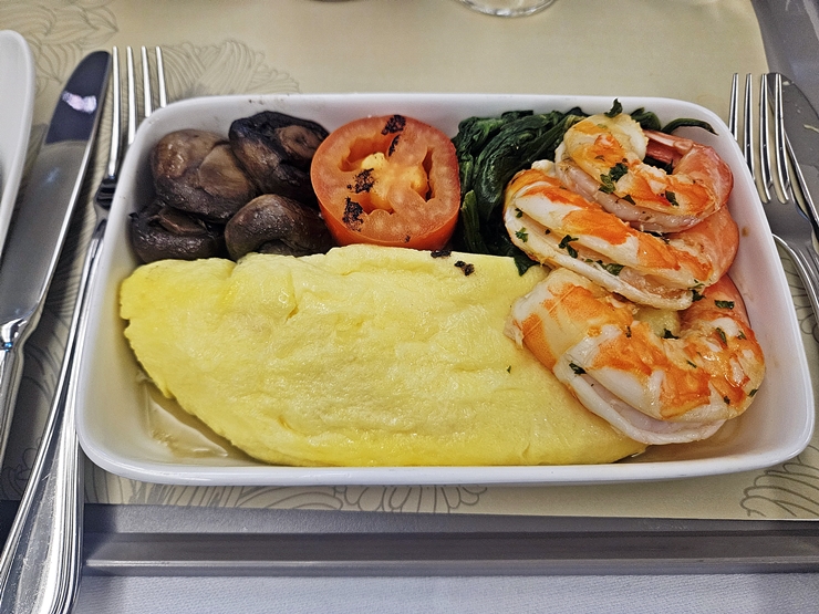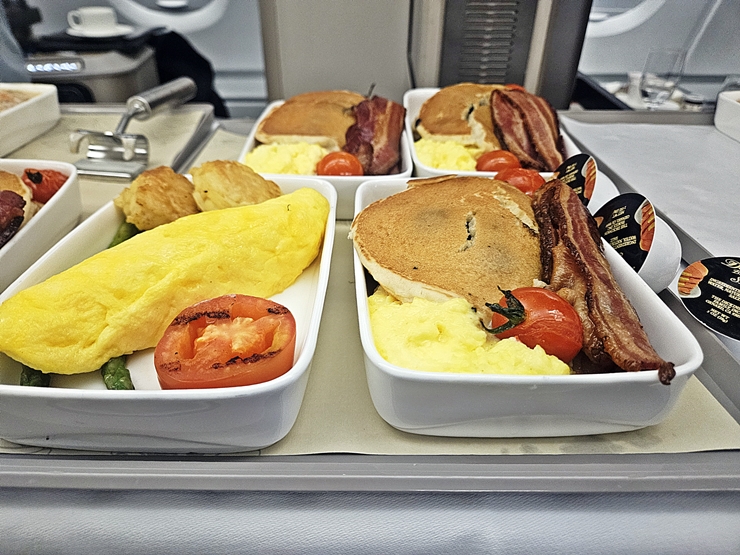 오믈렛 안에는 아무 것도 들어있지 않았다. 기내식에서 호텔 수준의 오믈렛을 기대하는 것은 큰 무리가 있고 그냥저냥 먹을만한 맛이었다. 계란으로 만들었는데 맛이 없을 수는 없지.