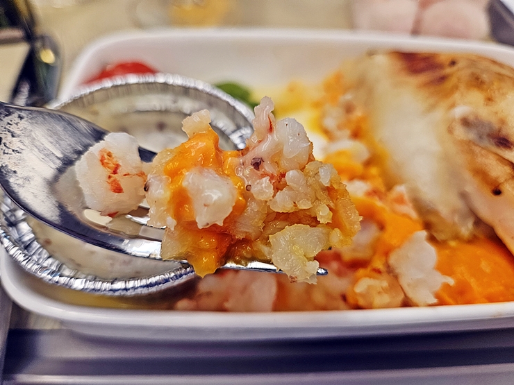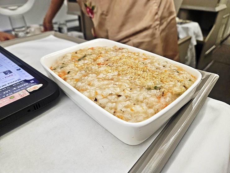 비록 양이 적긴 하지만 랍스터는 부드럽고 맛있었다. 랍스터를 먹고 있으니 나도 모르게 소주 생각이 나더라. 하지만 기내에서 소주를 요청할 수는 없어서 와인만 한 잔 곁들였지.