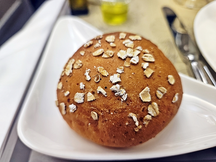 타다키를 어느 정도 다 먹었을 무렵 승무원이 빵을 가지고 온다. 이번에도 바게트를 비롯해서 어쩌고 저쩌고 이것 저것 빵이 있다. 방을 많이 먹으면 탄수화물을 과하게 섭취할 가능성이 있기 때문에 하나만 골랐다.