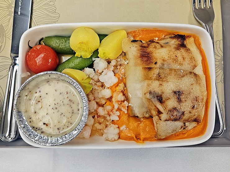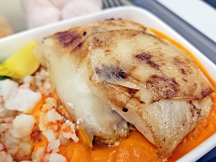 메인으로 선택한 대구 구이와 랍스터. 랍스터는 참으로 적게 들어 있긴 하지만 메인은 대구이기 때문에 괜찮다. 고기를 고를까 했지만 한 번은 해산물을 먹어보기도 싶었고, 대구는 내가 참 좋아하는 생선이기 때문에 고기를 포기할 수 있었다.