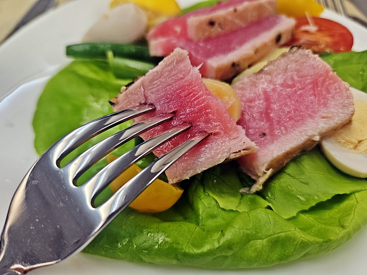 기내식으로 나온 타다키이지만 어중이 떠중이 같은 이자카야에서 파는 참치 타다키보다 수준이 높았다. 이럴 때는 괜히 기분이 좋아진단 말이지. 기내식 수준이 높아진 것인지, 요즘 이자카야 수준이 낮아진 것인지는 잘 모르겠다.