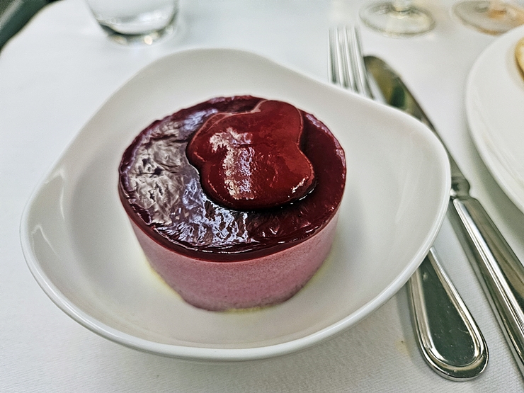 후식으로 나온 딸기 무스 케이크. 딱 봐도 달아 보여서 사진 찍고 한 입만 먹고 남겼다. 생각보다 많이 달지 않았지만 하나를 다 먹기에는 무리가 있는 단맛이었다.
