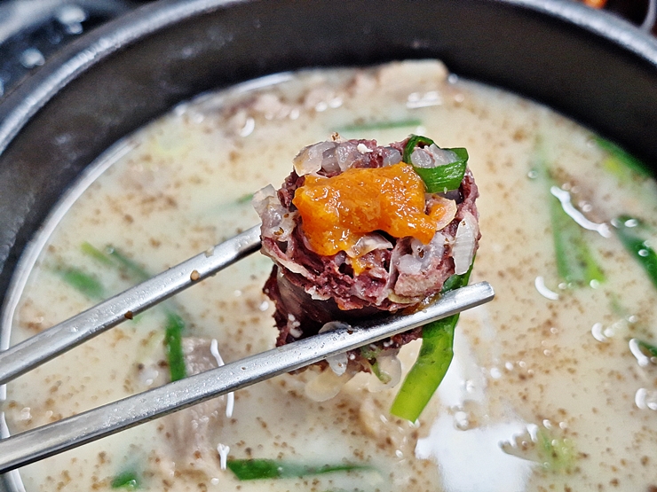 부속 고기도 섭섭하지 않게 들어있다. 고기 부위는 다양하게 들어 있는데 누린내는 전혀 나지 않았다. 이런 부속 고기는 새우젓을 찍어 먹어도 맛있고 쌈장을 찍어 먹어도 맛있지.