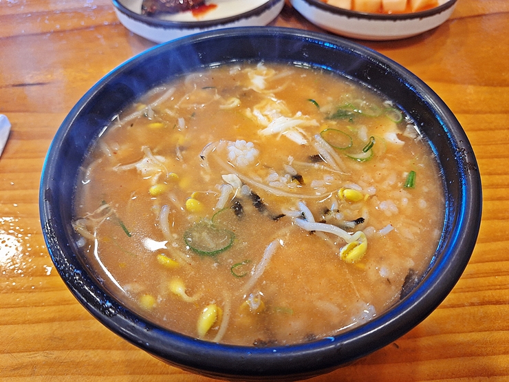 어느새 완뚝을 하게 된 모습. 참으로 훌륭한 모습이다. 개인적으로 전주현대옥의 콩나물국밥보다 수준이 높다고 생각한다. 익산에서 맛있고 시원한 콩나물국밥을 먹고 싶다면 꼭 한 번 가볼 것을 추천하는 곳이다.