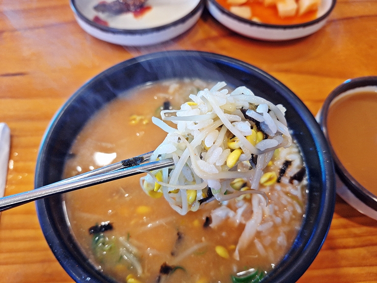 점심 시간이 지났음에도 불구하고 자리가 거의 다 차있었다. 생각보다 젊은 고객들도 제법 있었다. 내가 20대일 때는 콩나물국밥을 일 년에 한 번 먹을까 말까 했는데. 요새 아이들은 웰빙 푸드를 즐겨 찾나보다.