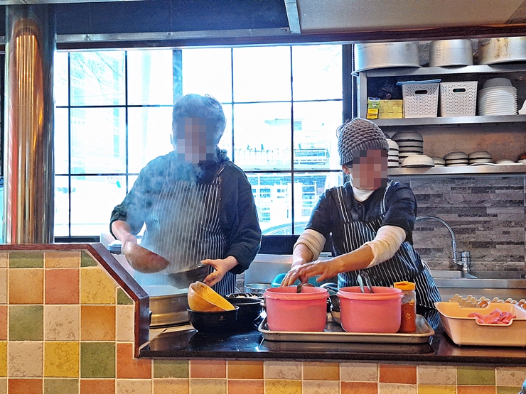 고객들이 끊이지 않고 방문을 하기 때문에 부엌에서는 쉼 없이 콩나물국밥을 만들고 있다. 일해옥의 콩나물국밥은 밥을 토렴해서 제공한다.
