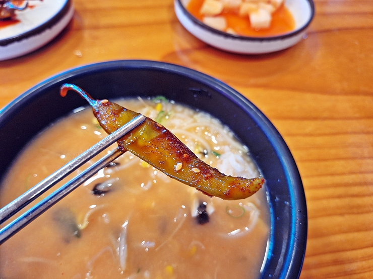 살짝 매웠지만 식욕을 돋우는 고추 장아찌도 열심히 먹었지. 고추 장아찌가 입 안을 개운하게 하는 역할을 해서 한 번 리필을 한 후 아낌없이 다 먹었다.