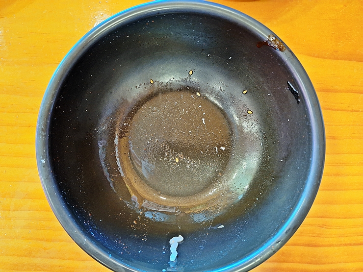 콩나물은 특유의 아삭한 식감을 잘 유지하면서도 질기지 않고 부드럽게 잘 씹힌다. 콩나물과 토렴된 밥이 굉장히 잘 어울려서 끊임 없이 먹을 수 있다. 탄수화물을 줄이고 있는데 출장 기간에는 다 먹게 되었다.