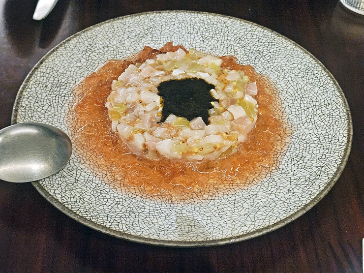 피시 타르타르. 고정 가격이 아닌 변동 가격인데, 철에 따라 생선 가격이 바뀌어서 그런 것 같다. 이런 피시 타르타르는 한 종류의 생선을 사용하는 것보다 철에 따라 바꾸는 것이 맞다. 피시 타르타르는 상큼한 소스를 베이스로 만들었는데 마치 카르파초를 먹는 느낌이다. 자극적이지 않아서 식욕을 돋우기에 적당했다.