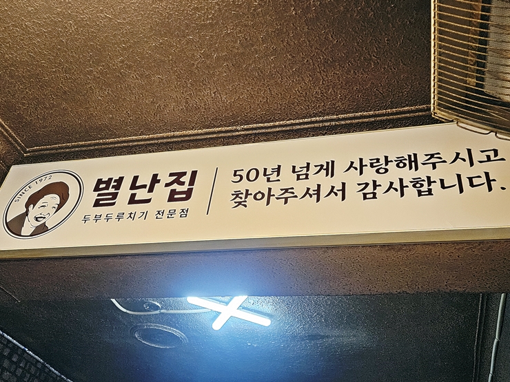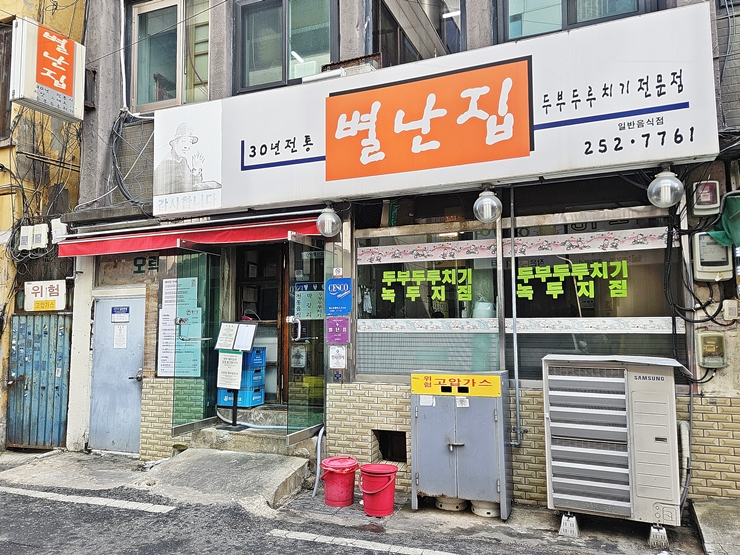 잠시 대전 출장 갔을 때 먹었던 것을 올리기로 한다. 작년부터 올해까지 계속해서 대전, 익산 등 지방 출장을 많이 가고 있다. 지방 출장은 언제나 행복하지. 대전은 성심당으로 유명하지만 두부 두루치기나 칼국수도 유명하다. 이번에 올릴 곳은 50년 이상의 전통을 가진 별난집이다. 간판에는 30년 전통이라 적혀 있는데 1972년부터 영업을 했다고 한다. 이번에는 일행 없이 나 혼자 방문을 했다.