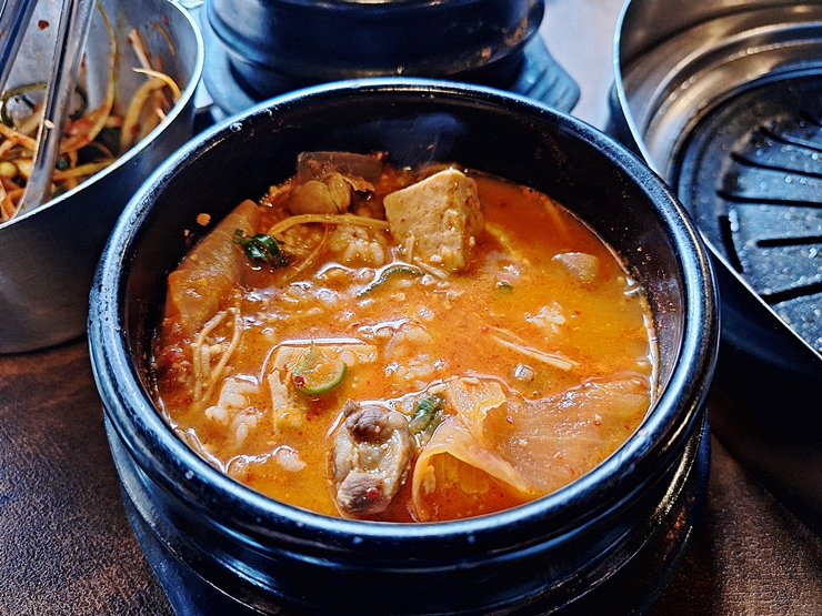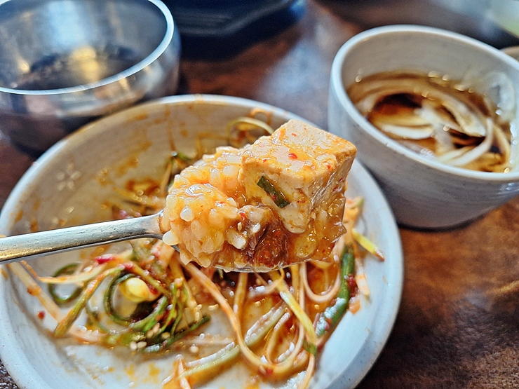 계란찜. 수분이 좀 많긴 하지만 이런 계란찜이 서비스로 나오는 것은 참으로 감사한 일이 아닐 수 없다. 지난 번에 방문했을 때는 된장찌개도 서비스로 나왔는데 이젠 된장찌개는 따로 나오지 않는다고 한다. 그래서 술밥을 만들어 먹기 위해 따로 주문했다.