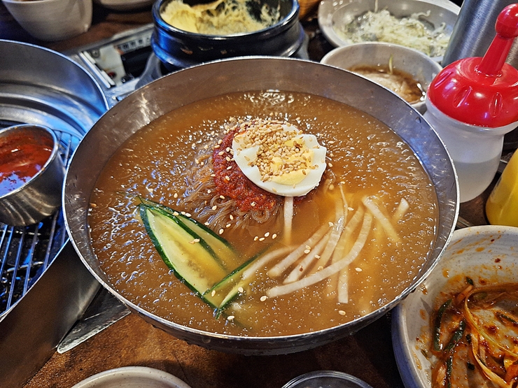 잘 구워진 삼겹살에 와사비를 올려서 맛있게 냠냠. 이쯤 먹으니 상당히 술에 취한 기분이다. 그래서 후식으로 냉면 하나 주문하고 자리를 마무리 하기로 했다.