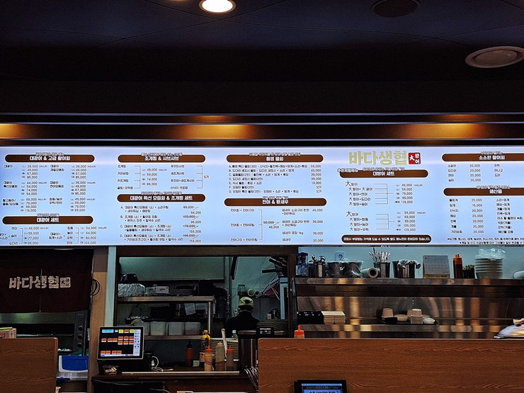 메뉴. 다양한 활어와 해산물을 판매하고 있다. 늦긴 했지만 겨울은 겨울이어서 그런지 대방어도 있었다. 짝꿍은 대방어를 좋아하지 않기 때문에 회 선택권을 짝꿍에게 넘겼다. 짝꿍은 신중히 고민을 한 후 우럭을 골랐다.