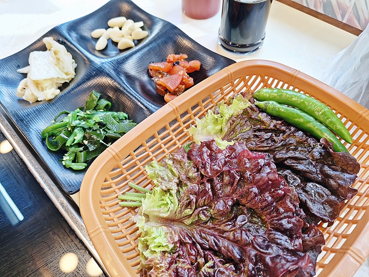 선어 회의 경우 와사비와 간장을 사용해서 먹는 것이 정석이지만 활어 회의 경우 먹는 방법에 정석이 없지. 그래서 상추, 깻잎, 고추, 마늘과 쌈장 등 다양한 부속 반찬들이 많이 나오는 편이다.