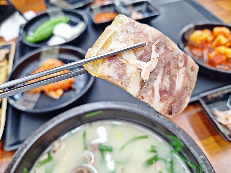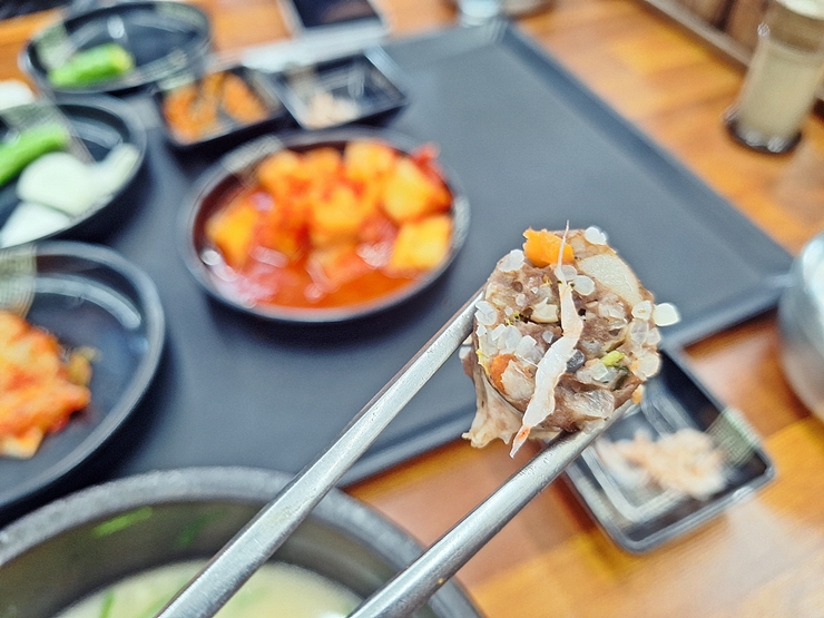 편육에도 새우젓을 올려서 맛있게 냠냠. 참 맛있는 집의 OEM을 맡고 있는 공장 수준이 상당한 것 같다. 편육 맛이 밍밍하지 않고 굉장히 진하고 쫀득한 식감이 일품이다.