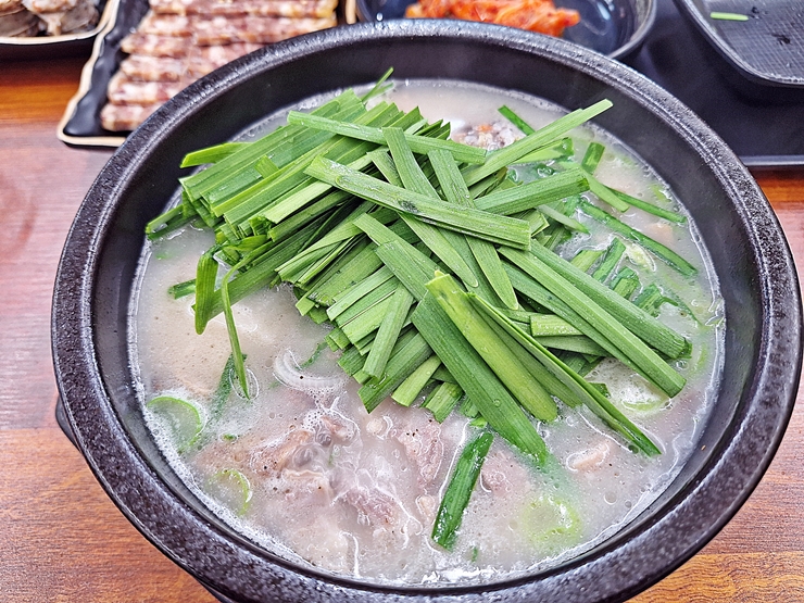 아름다운 모습의 순댓국. 부추는 내가 따로 넣은 것이다. 난 부추를 굉장히 좋아하기 때문에 양껏 넣어 먹었지. 부추에는 칼륨과 무기질이 많고, 특히 비타민 A와 C가 많아서 간 해독에도 도움이 된다. 이렇게 몸에 좋고 맛도 좋은 부추. 먹을 수 있을 때 많이 먹도록 하자.