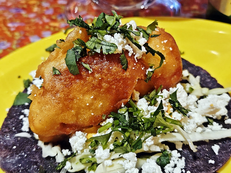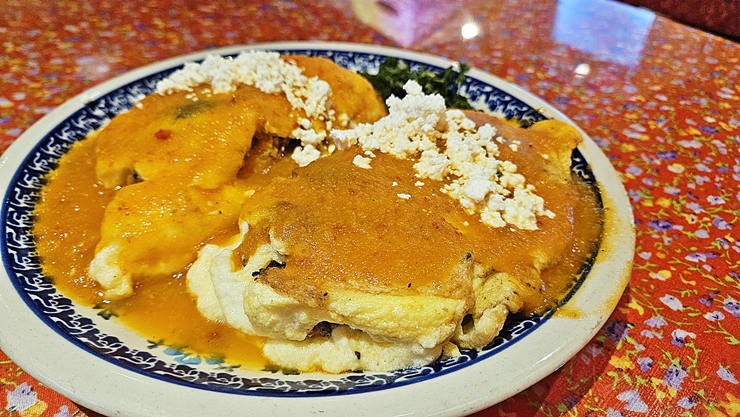 칠레례에노. 이름에 칠레가 들어가는 것을 보니 칠레 요리인가 싶었지만 멕시코 고추 전이라고 한다. 아무리 봐도 전으로 보이진 않았다. 고추, 소고기, 감자와 치즈 등을 넣고 속을 채운 후 계란 옷을 입혀 살사로하를 곁들였다고 한다. 참으로 어렵기 그지 없구나. 살사 로하는 빨간 소스를 뜻한다고 한다.