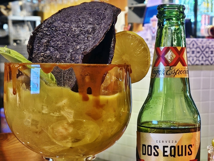 맥주와 함께 주문한 세비체. 세비체를 특이하게 큰 칵테일 잔에 준다. 세비체에는 흰 살 생선, 새우, 토마토, 오이, 양파와 레몬 등이 들어있다. 이걸 또스따다와 함께 먹으면 된다. 또스따다가 뭔지 찾아보니 토르티야를 굽거나 튀긴 것을 말한다고 한다. 상큼한 세비체가 식욕을 돋우는 아주 좋은 역할을 했다.