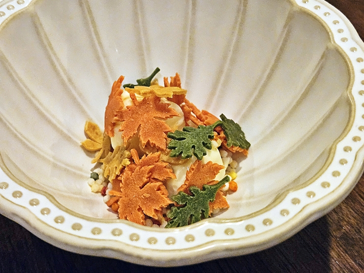 스모크 관자. 김 위에 크림 소스, 관자와 베이컨을 올렸다. 관자와 베이컨의 조합은 상당히 이색적이었는데, 막상 먹어보니 베이컨의 짭짤한 맛과 관자의 고소한 맛이 잘 어울렸다. 역시 고기는 어느 것과 먹어도 참 맛있지.