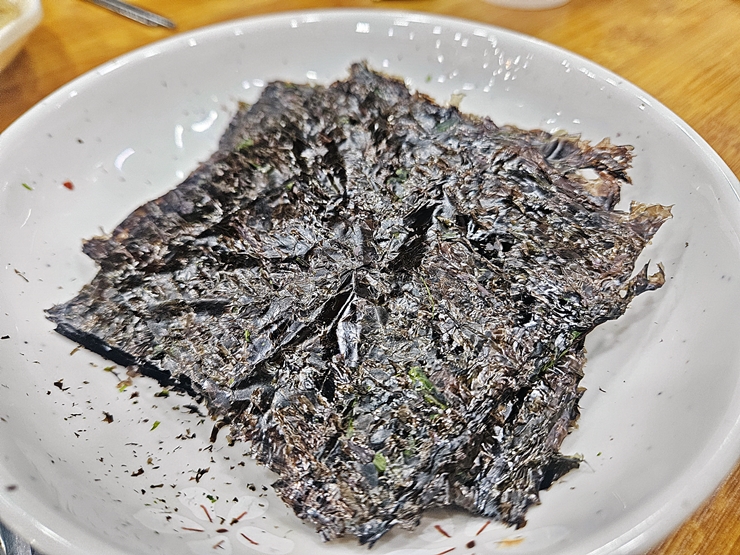 양념이 되어 있지 않은 김도 나온다. 우리가 주문한 동태탕에는 김이 잘 어울리진 않지만 아마 명태 조림용으로 같이 나오는 것 같다. 김 맛은 딱 김 맛이었다.