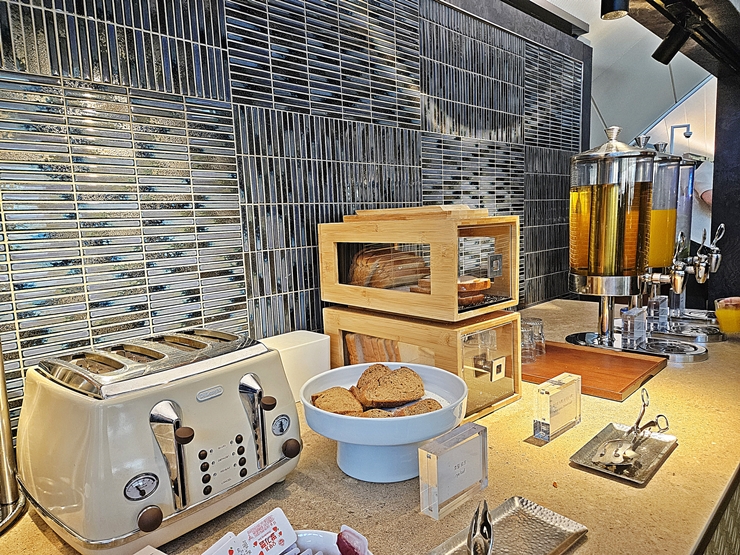 빵과 주스도 있다. 빵은 탄수화물 덩어리이기 때문에 참 맛있지. 하지만 쉽게 살이 찌기 때문에 빵 먹는 것을 지양하는 편이다. 빵 하나 노릇하게 구워 먹고 싶었지만 꾹 참았다.