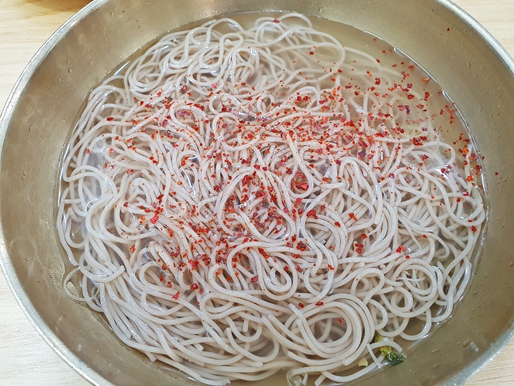 어느 정도 먹은 후 맛의 변화를 이끌기 위해서 고춧가루를 조금 넣어 먹었다. 지금은 없어진 을지면옥이 이렇게 고춧가루를 넣어서 제공하는 스타일이었다. 개인적으로 을지면옥의 평양냉면을 그리 좋아하지 않았지만 가끔은 그 맛이 그립다. 뭐, 필동면옥이라는 대체재가 있기 때문에 굳이 없어도 되긴 하지만. 노원구에서 가볍게 평양냉면을 즐기고 싶다면 한 번 가봐도 좋을 곳으로 추천하는 곳이다.