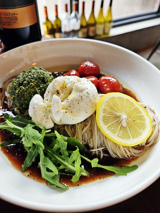바질 냉 파스타. 개인적으로 냉면, 막국수와 콩국수 같은 국수 요리를 제외하면 차가운 면 요리는 그다지 즐기지 않는 편이다. 특히 이런 냉 파스타나 중화 냉면은 극도로 주문을 꺼리는 요리 중 하나라고 할 수 있는데, 이날은 같이 간 지인이 꼭 주문을 해야 할 메뉴라고 해서 주문하게 되었다. 나의 예상과 달리 상당히 맛이 좋았다. 바질의 향과 맛이 풍부하게 느껴졌고, 냉 파스타의 소스 역시 마음에 들었다. 차가운 파스타에 대한 편견을 깨는 좋은 요리였다. 이 기세를 몰아서 나의 편협한 편견을 깰 수 있도록 차가운 면 요리를 많이 즐기도록 해야겠다.