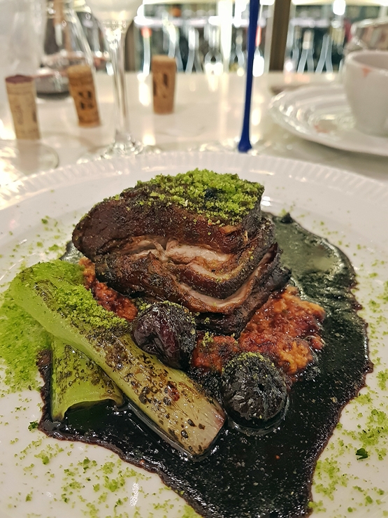 브레이징 포크밸리. 브레이징은 서양 요리 기법 중의 하나로써, 한국식 요리 기법으로 말하면 찜이라고 생각하면 된다. 물이 증발하면서 생기는 스팀으로 익히는 것인데, 뚜껑을 계속 닫아두고 익힐 경우 내부 온도가 올라가서 과하게 조리가 되는 단점이 있다. 그래서 초심자가 무턱대고 다가가기엔 난이도가 어려운 요리 기법으로 생각을 할 수 있지만, 내부 온도가 올라가는 것 같으면 뚜껑을 열면 된다. 와인웍스의 포크밸리는 촉촉하게 육즙을 잘 간직하고 있었고 부드러운 식감이 일품이었다. 육즙을 최대한 살려서 조리 했기 때문에 돼지고기 특유의 고소한 맛도 잘 느낄 수 있었다. 아아, 이런 요리가 나오면 와인을 마시지 않을 수가 없지.
