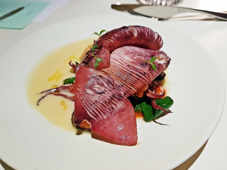 오징어 구이. 개인적으로 가장 만족도가 떨어졌던 요리다. 오징어 사이즈가 작아서 총알 오징어를 사용한 것 같기도 했고, 굳이 여기서 먹어야 하나 하는 생각도 많이 들었기 때문이다. 정성을 들여 만든 것은 분명한데 오징어라는 재료 자체가 워낙 맛이 확실하기 때문에 큰 감흥을 느낄 수 없었다.