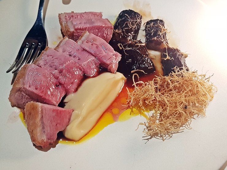 구운 가리비와 사워 도우. 예전에는 사워 도우를 무슨 맛으로 먹나 싶었는데 이제는 나도 모르게 찾게 되는 빵이다. 구운 가리비를 사워 도우 위에 올려 먹어도 되고 따로 먹어도 된다. 올려 먹는 것이 더 맛있게 느껴지긴 했다. 구운 가리비에 ㅏ양한 견과류를 올렸는데 이것들의 조화가 상당했다. 와인과도 잘 어울려서 맛있게 먹었다.
