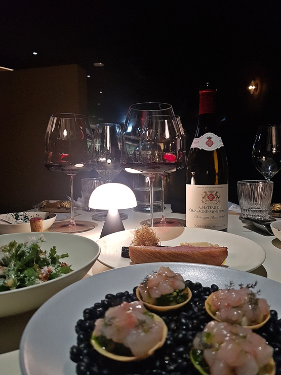 이날 즐긴 와인은 샤또 드 사샹뉴 몽라쉐. 아, 이름 한 번 어렵다. 와인을 공부하는데 가장 어려운 이유가 바로 이 어려운 이름 때문이다. 진로, 처음처럼이나 참이슬처럼 이름이 간단하면 외우기 쉽고 흥미가 많이 생길 것이 분명한데, 이름을 외우기 어려우니 큰 의욕이 생기지 않는 것 같다. 이 샤또 어쩌고 와인은 처음에는 탄닌이 강하게 느껴지는데 점차적으로 산미가 올라와서 밸런스를 맞추는 와인이었다. 와인에 대한 설명은 이쯤에서 생략한다.