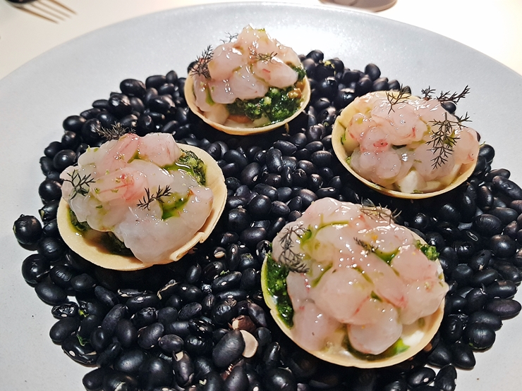 애피타이저로 주문한 단새우 타르트. 단새우는 북쪽분홍새우를 말하는 것인데, 정확한 이름보다 단새우라는 별명으로 더욱 유명하다. 단새우라는 별명이 있는 것처럼 그 특유의 단 맛을 흠뻑 느낄 수 있다. 사이즈가 작기 때문에 회, 초밥이나 튀김으로 주로 사용된다. 단새우를 듬뿍 사용해서 만든 단새우 타르트는 식욕을 돋우기에 딱 좋은 전채 요리였다.
