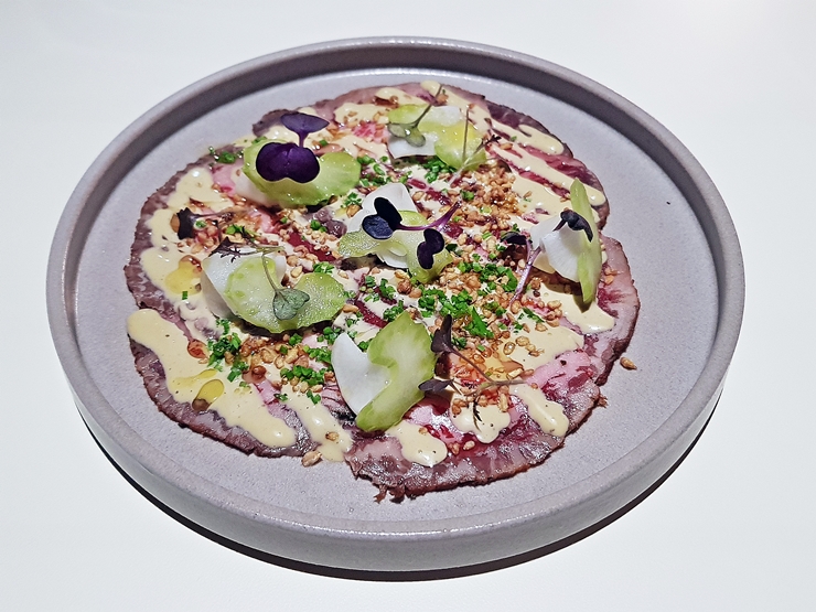비프 카르파초. 카르파초는 흔히 해산물을 사용해서 만드는 것으로 알려졌지만, 이렇게 육류를 사용해서 만들기도 한다. 이탈리안 요리의 대표적인 애피타이저로 꼽히는 요리다. 한국에서는 비프 카르파초는 거의 접해보지 않아서 그랬는지 몰라도 이날 먹은 비프 카르파초는 한국에서 접한 것 중 가장 맛있고 수준 높게 느껴졌다. 가격에 비해 양이 좀 아쉽긴 하지만 다른 요리들이 많이 나올 것이기 때문에 크게 개의치 않았다.